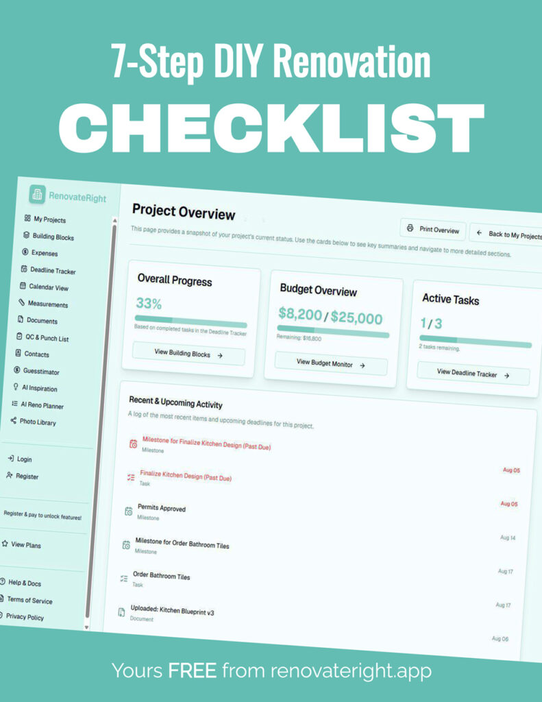 This renovation checklist gives you the framework you need to renovate right from the beginning.