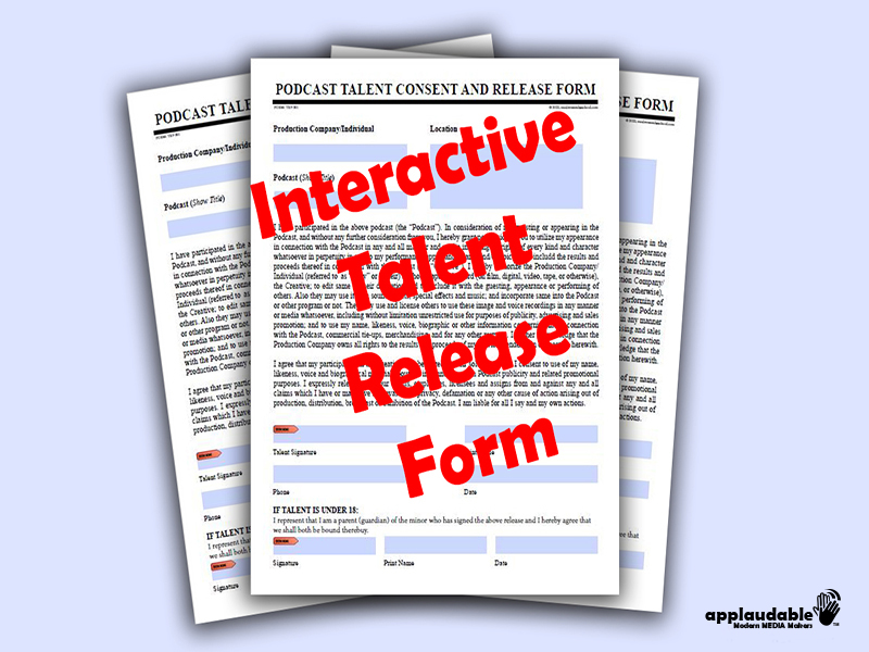 Protect your podcast’s IP with this interactive talent release form. It’s a good practice to obtain the signed approval of guests and participants in your content to protect you from potential takedown notices and copyright claims.